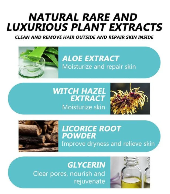 • Gentle and Harmless: Our advanced formula is designed to be gentle on your skin while effectively removing hair.